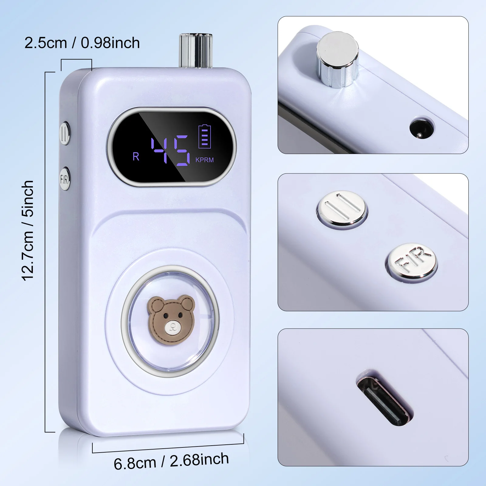 4. Adjust the rotary switch to your desired RPM (0-15k for natural nails, 15k-30k for gel, 30k-45k for professional acrylic work).