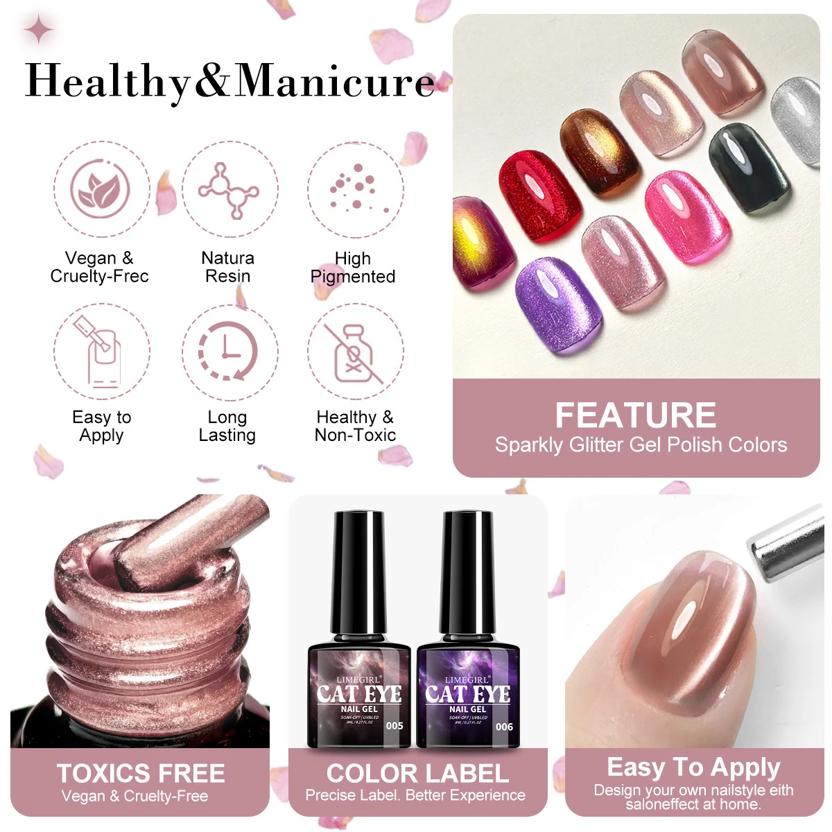 Achieve professional, mesmerizing salon-quality nails at home with the Limegirl Cat Eye Gel Nail Polish collection. These polishes feature high-density magnetic powder that creates a stunning glass-bead effect, shifting beautifully under different lights and angles. Perfect for DIY enthusiasts who want high-gloss shine and artistic flair without the salon price tag.