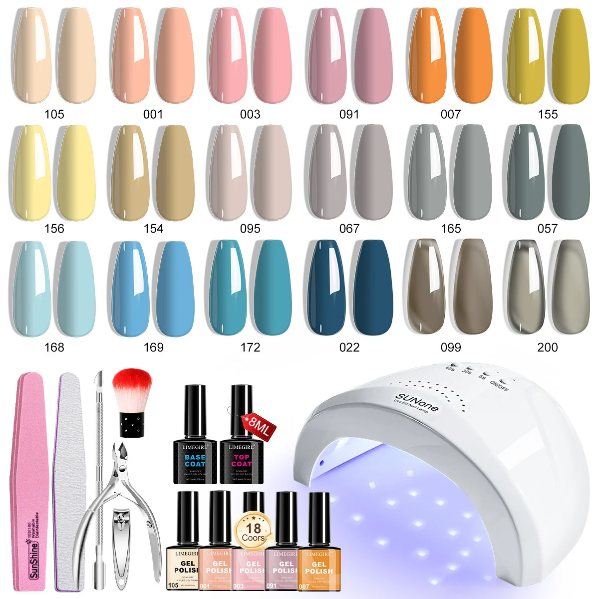Achieve professional, salon-quality manicures from the comfort of your home with the Limegirl 18-Color Gel Nail Polish Kit. This comprehensive starter set features highly pigmented, smooth-application gels and a high-efficiency SunShine LED lamp, designed to give you a flawless finish that lasts for weeks.