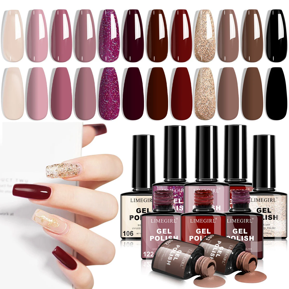 Gel Nail Polish Set – Limegirl 12 Colors Long Lasting Soak Off UV LED Professional Nail Art Kit