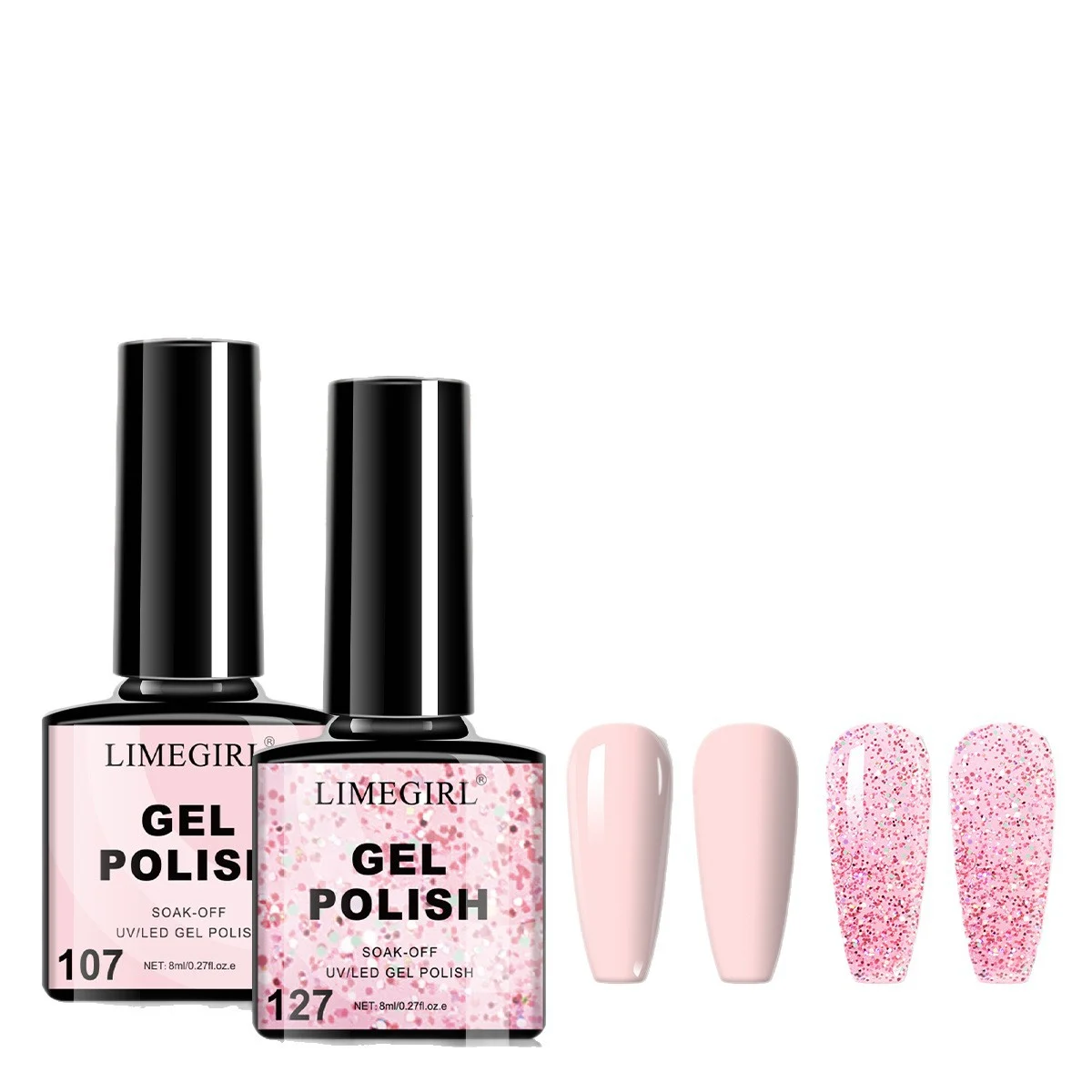 Gel Nail Polish Set, Limegirl 2-Color UV LED Soak Off Varnish for Professional Salon and DIY Manicure, 8ml