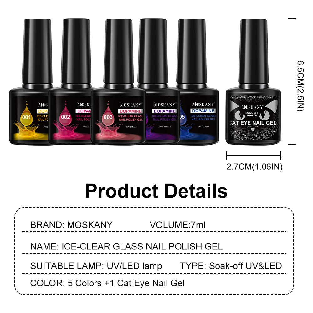Embrace the vibrant energy of summer with our Dopamine Ice-Clear Glass Nail Polish Gel. Designed to create a stunning, translucent ‘glass’ effect, this collection brings a refreshing and trendy look to your manicure. Whether you’re a professional nail artist or a DIY enthusiast, this high-gloss formula ensures your nails stand out with a sophisticated, watery shine.