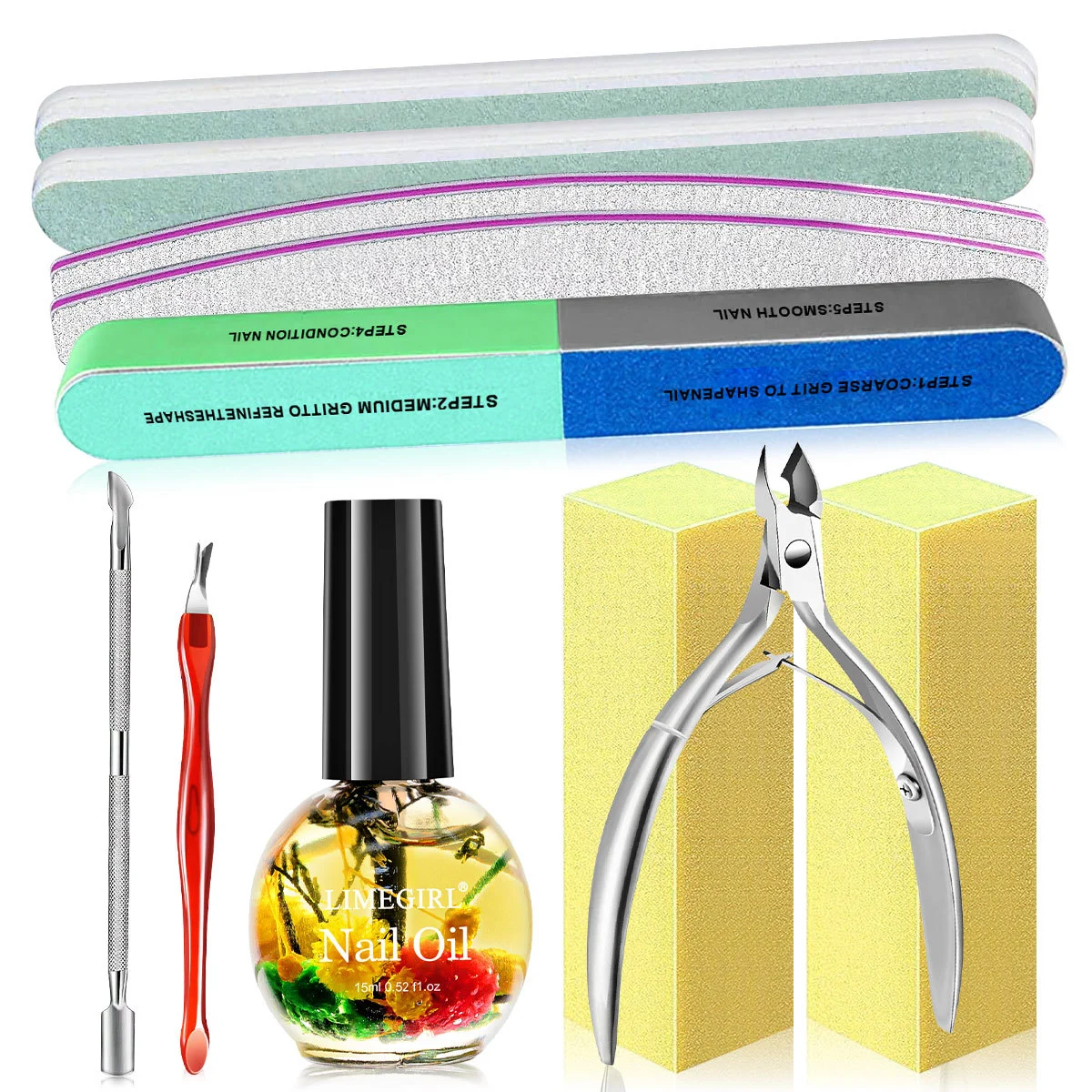 Experience salon-quality nail care from the comfort of your home with the Limegirl 11-Piece Manicure Tool Set. This comprehensive kit is designed to transform dull, rough nails into polished, healthy-looking masterpieces. Featuring natural dried flower nutrition oils and professional-grade buffers, it provides a complete ritual for nail strengthening and cuticle repair.