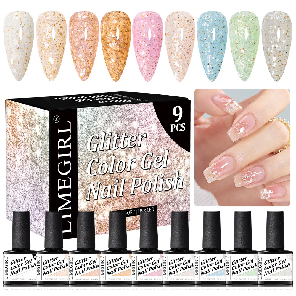 Mica Shell Gel Polish Set 9 Colors Glitter Summer Style Soak Off UV LED Nail Art Kit