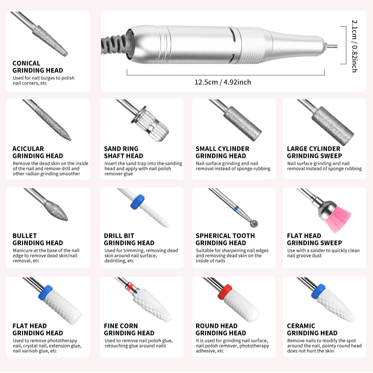 - Bullet Drill Bit: For base manicure and dead skin removal.