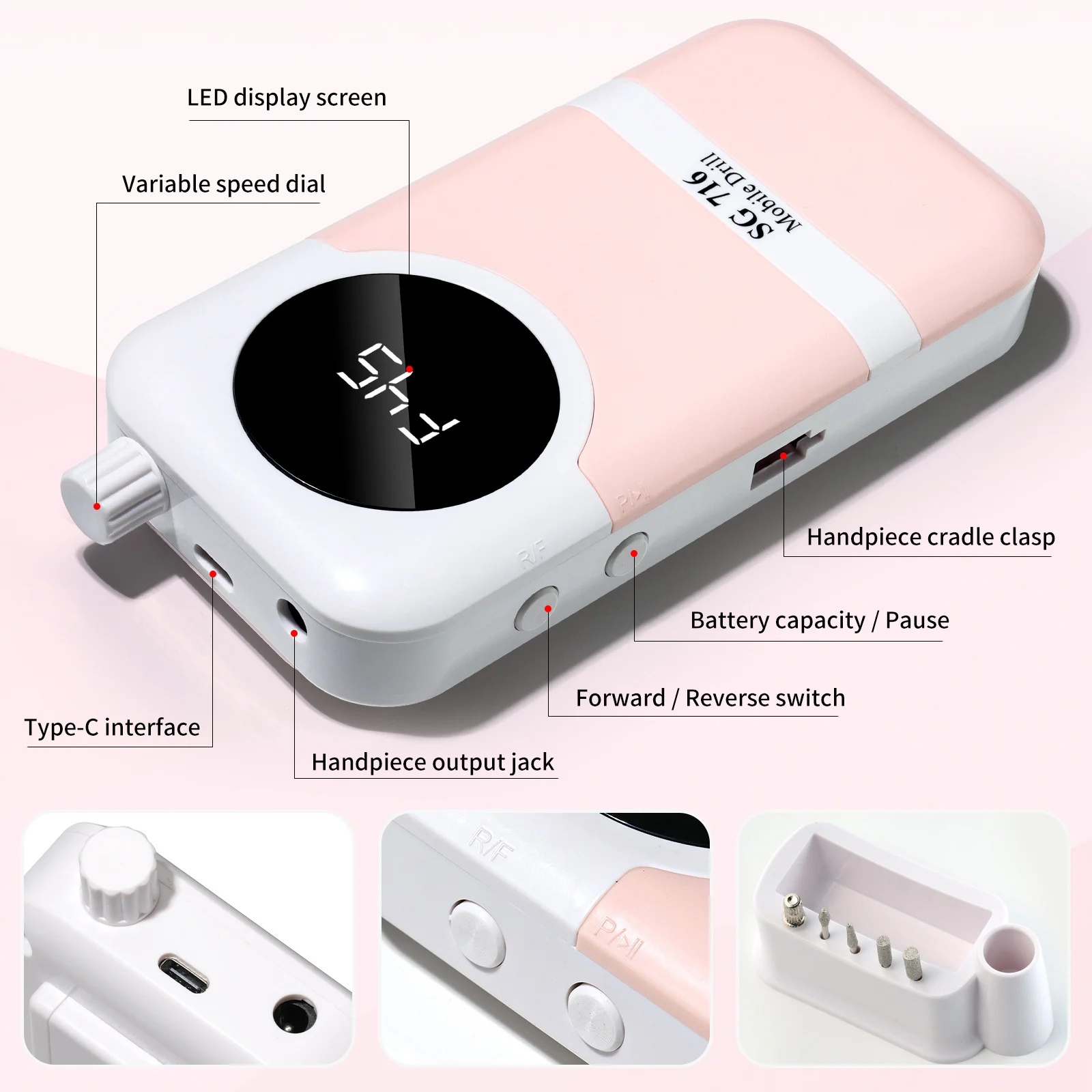 Elevate your nail care routine with the Limegirl Professional Portable Nail Drill. Engineered for both salon professionals and DIY enthusiasts, this high-performance E-file offers unparalleled speed and precision. With a powerful motor reaching up to 45,000 RPM, it effortlessly handles gel removal, acrylic shaping, and cuticle prep without the noise or high vibration of standard drills.